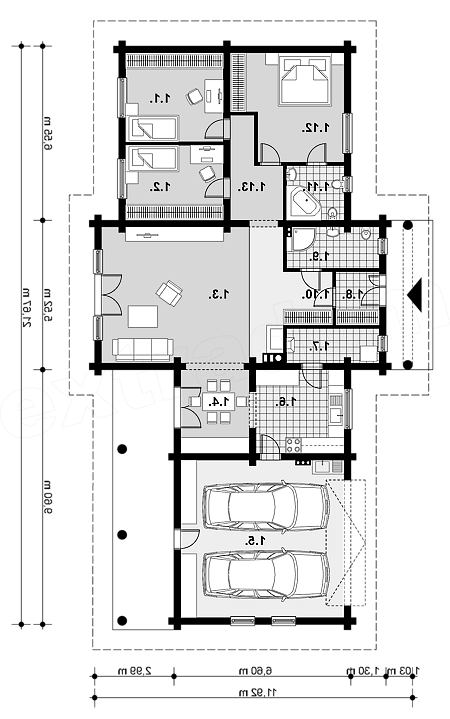 | Pow. użytkowa | 118,7 m2 | Kubatura | 998,4 m3 | Wysokość domu | 6,18 m |