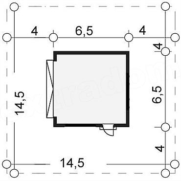 Pow. zabudowy 42 m2 Min. szer. działki 13,5 m Kąt nach. dachu 12 st