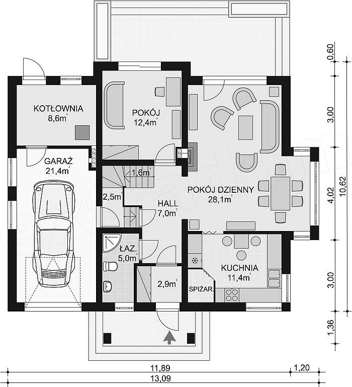 Pow. użytkowa 124,1 m2 Kubatura 340 m3 Wysokość domu 8,34 m
