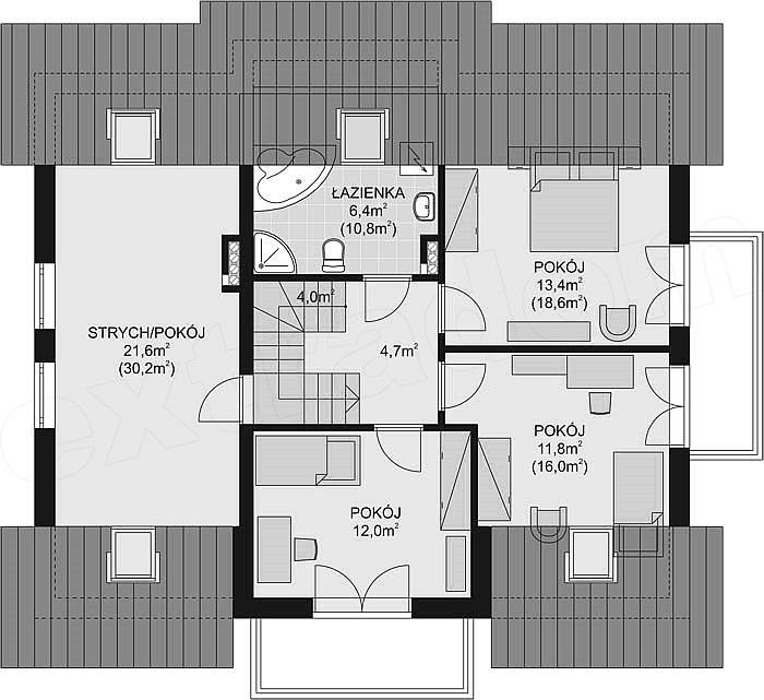 Rzut kondygnacji projektu APS 234 - Rzut poddasza