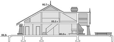 Przytulny, nieduży, nieco bajkowy dom, przeznaczony dla 4, 5, a wypadku adaptacji poddasza nawet 7 osobowej rodziny. Otwarta przestrzeń pokoju dziennego i kuchni, wydzielona część sypialna pozwalają na komfort i intymność. Kształt dużego zadaszonego tarasu można dowolnie zmieniać. Podcień z zewnętrznym kominkiem pozwala urządzać towarzyskie spotkania w ogrodzie, nie tylko w pełnym słońcu. Całość uzupełnia dwustanowiskowy garaż i pomieszczenie gospodarcze. Ewentualne poddasze można zaaranżować dowolnie również w późniejszym etapie.