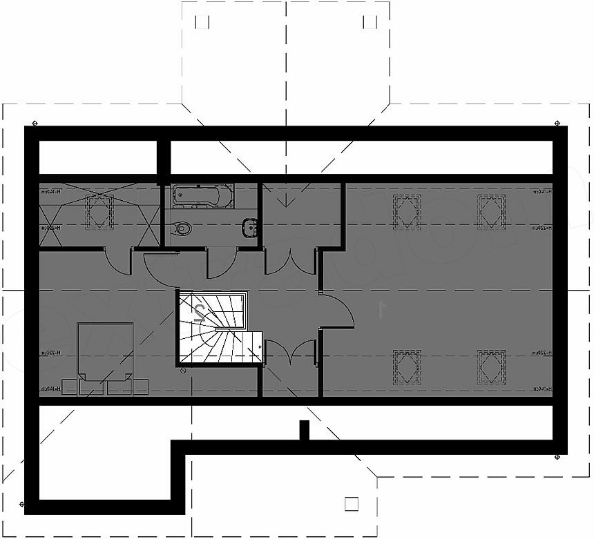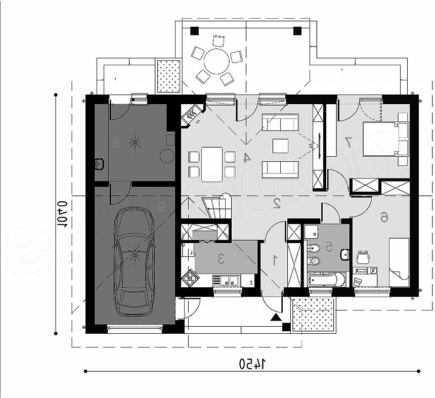 Dom D147 jest skierowany do naszych klientów, szukających niewielkiego, nowoczesnego domu parterowego z poddaszem do adaptacji i garażem. Prosta, czysta bryła oraz harmonijny podział w elewacjach czynią ten dom klasycznie eleganckim. Podstawowym założeniem przyjętym przy projekcie budynku było stworzenie funkcjonalnego i ciekawego wnętrza na niewielkim metrażu. Jest to budynek z poddaszem użytkowym, kryty dwuspadowym dachem. W elewacji budynku poprzez materiał zaakcentowano wyraźnie, strefę wejściową. W bryle budynku oddzielono także funkcję mieszkalną dzienną od nocnej, jak również strefę mieszkalną i strefy gospodarczej z dużą kotłownią.