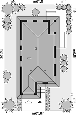 | Pow. zabudowy | 149,91 m2 | Min. szer. działki | 16,75 m | Kąt nach. dachu | 30 st |