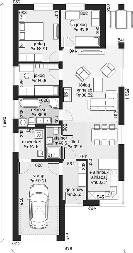 | Pow. użytkowa | 90 m2 | Kubatura | 530,68 m3 | Wysokość domu | 6,5 m |
