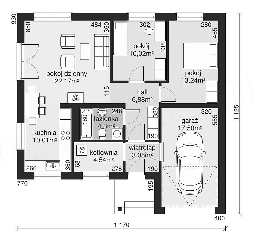 Dom przy Przyjemnej 3 bis to kompaktowy dom parterowy z garażem, zaprojektowany w nowoczesnej stylistyce. Jest on przygotowany dla osób poszukujących domu o sprawdzonych rozwiązaniach i ekonomicznego w codziennym użytkowaniu. Projektując wnętrze główny nacisk położono na funkcjonalność i potrzeby współczesnej rodziny. 30° kąt nachylenia połaci dachu skłania do rozważań nad możliwością wykorzystania poddasza.Projekt dostępny również w wersji z dachem o kącie nachylenia 25°.
