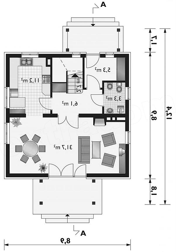 | Pow. użytkowa | 100,5 m2 | Kubatura | 750 m3 | Wysokość domu | 8 m |