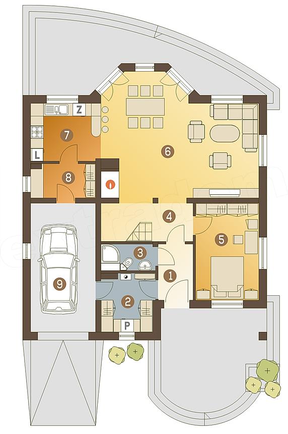 Rzut kondygnacji projektu Dzierlatka z garażem 1-st. [A] - Rzut parteru