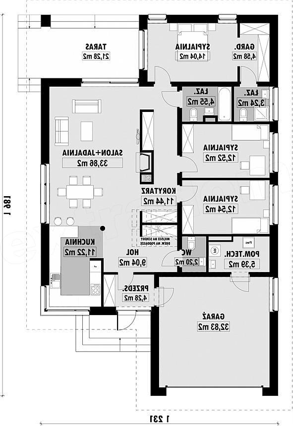 Pow. użytkowa 128,9 m2 Kubatura 485,3 m3 Wysokość domu 7,7 m