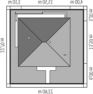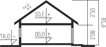 Pow. zabudowy 174,75 m2 Min. szer. działki 22,6 m Kąt nach. dachu 22 st