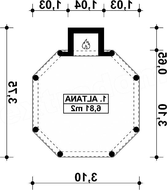 | Pow. użytkowa | 6,81 m2 | Kubatura | 24,3 m3 | Wysokość domu | 3,61 m |