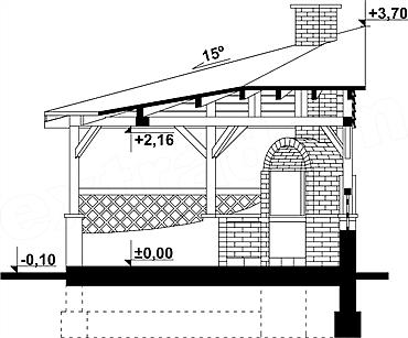 Projekt altany ogrodowej z grillem. Do projektu dołączone jest zestawienie: podstawowych materiałów konstrukcyjnych i więźby dachowej, jak również bezpłatna zgoda na dokonanie zmian.
