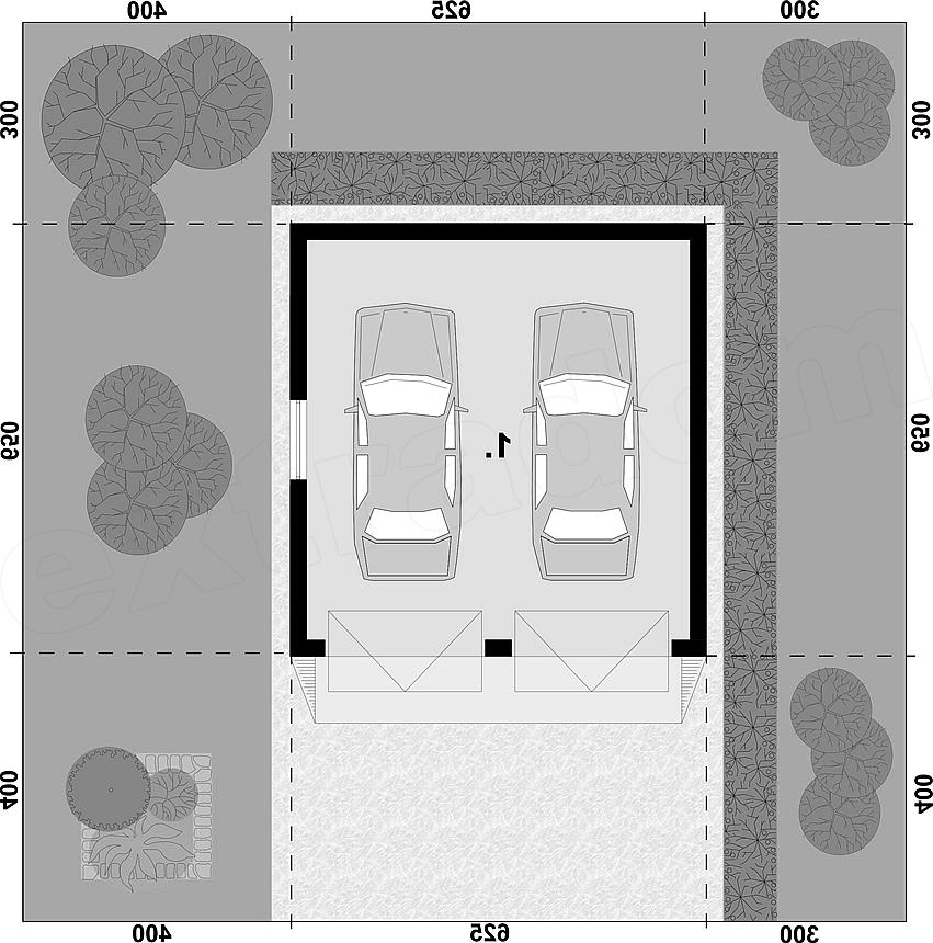 Garaż dwustanowiskowy, wolnostojący, parterowy.