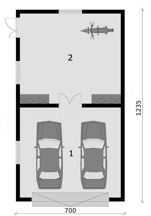 Garaż dwustanowiskowy z pomieszczeniem gospodarczym.