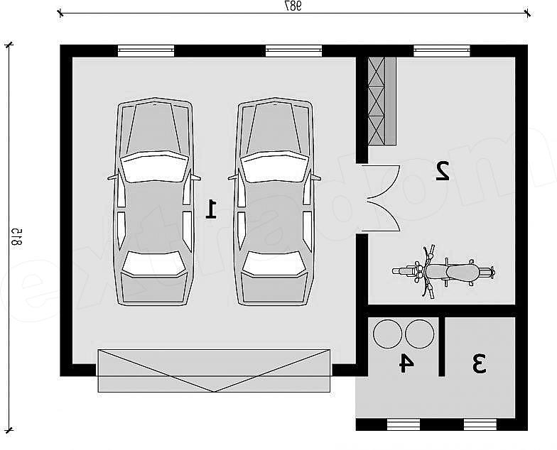 Garaż dwustanowiskowy z pomieszczeniem gospodarczym, składem na drewno i odpady.