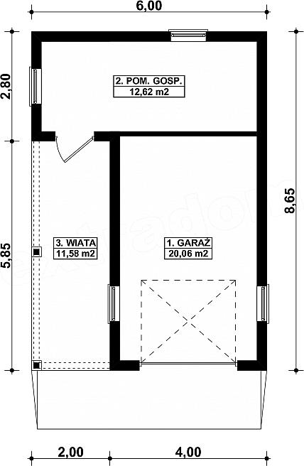 Projekt garażu jednostanowiskowego, parterowego, niepodpiwniczonego, przeznaczonego dla samochodów osobowych z pomieszczeniem gospodarczym i wiatą. Do projektu dołączone jest zestawienie: stali, więźby dachowej oraz stolarki drzwiowej i okiennej, jak również bezpłatna zgoda na dokonanie zmian.
