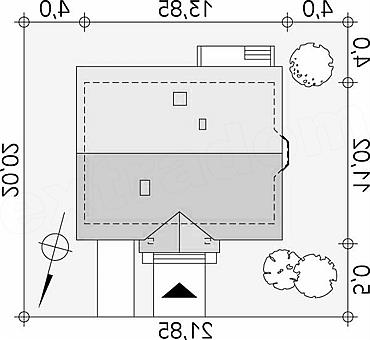 Pow. zabudowy 127 m2 Min. szer. działki 21,85 m Kąt nach. dachu 45 st