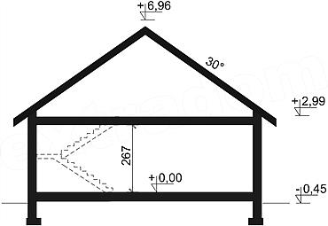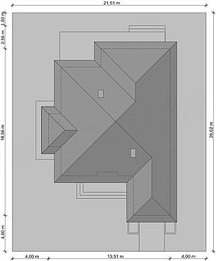Pow. zabudowy 179,4 m2 Min. szer. działki 21,51 m Kąt nach. dachu 30 st