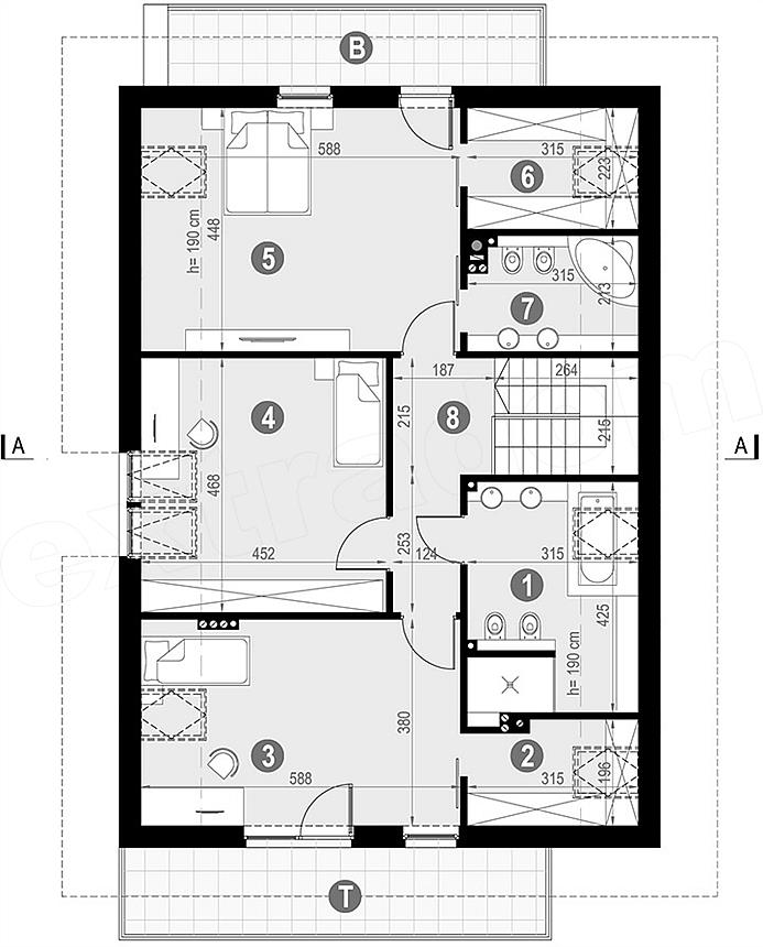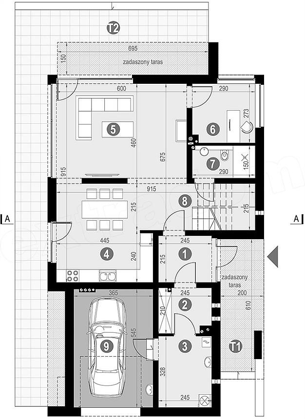 | Pow. użytkowa | 183,87 m2 | Kubatura | 965 m3 | Wysokość domu | 8,65 m |