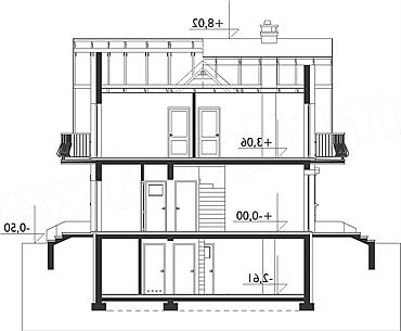 Rodzina Kai to domy parterowe z użytkowym poddaszem i z garażem, o powierzchni 120-130m2, zbudowane na rzucie litery T. Inaczej niż np. w zbliżonej Zoi, kalenice dwuspadowych dachów nad ramionami planu są prostopadłe, a przyziemie części gospodarczej zajmuje tylko garaż. Podobnie jak we wszystkich wariantach rodziny, w projekcie domu Kaja Lux Grota front ze szczytem dachu, wyraźnie wysuwa się ku frontowi posesji, a ryzalit z jadalnią w ścianie bocznej akcentuje lukarna doświetlająca sypialnie. Parter, tak jak w innych wersjach, mieści otwartą ale czytelnie oddzielająca kuchnię ze spiżarnią, strefę dzienną i dodatkowy pokój. Poddasze jest dwupoziomowe: nad częścią mieszkalną są trzy pokoje z dużą łazienką, a niżej, nad garażem - główna sypialnia z dużą garderobą. Projekt domu Kaja Lux Grota wyróżnia się w rodzinie całkowitym podpiwniczeniem i rozmiarem kotłowni przeniesionej z małego pomieszczenia przy sieni. To rozwiązanie daje swobodniejszy wybór sposobu ogrzewania oraz więcej miejsca na gościnną łazienkę na parterze. Kształt bryły i duże balkony zacieniające taras wejściowy i ogrodowy sprzyjają decyzji o dekoracyjnej stylistyce wykończenia.