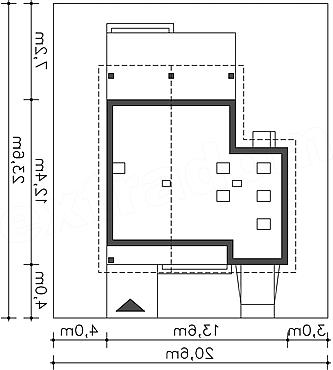 Pow. zabudowy 140,96 m2 Min. szer. działki 20,6 m Kąt nach. dachu 35 st