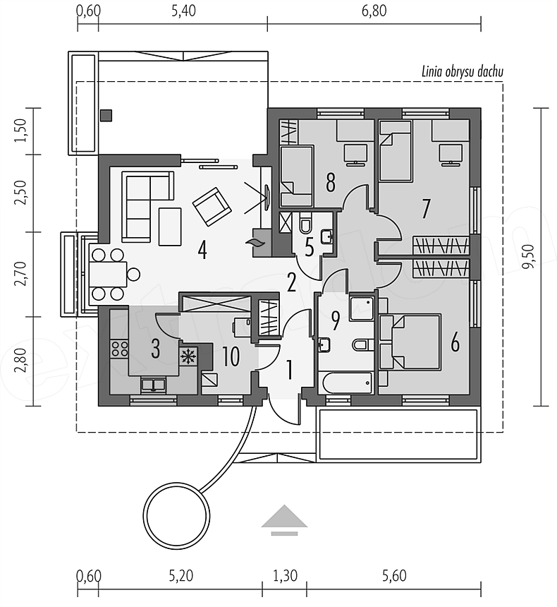 | Pow. użytkowa | 80,6 m2 | Kubatura | 265,86 m3 | Wysokość domu | 5,78 m |