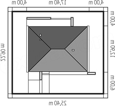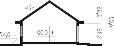 Pow. zabudowy 184,84 m2 Min. szer. działki 25,4 m Kąt nach. dachu 20 st