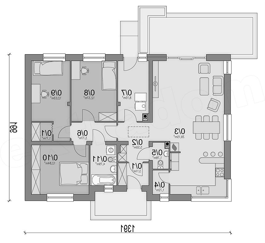 Pow. użytkowa 98,77 m2 Kubatura 791,75 m3 Wysokość domu 7,55 m