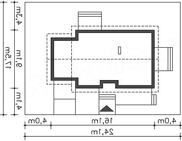 Pow. zabudowy 134,57 m2 Min. szer. działki 24,1 m Kąt nach. dachu 20 st