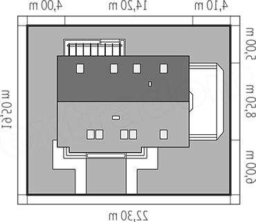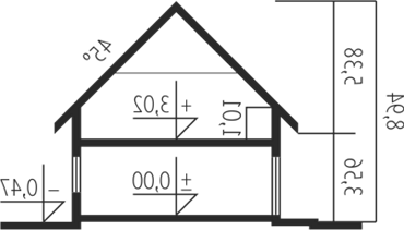 Pow. zabudowy | 114,48 m2 | Min. szer. działki | 22,18 m | Kąt nach. dachu | 45 st |