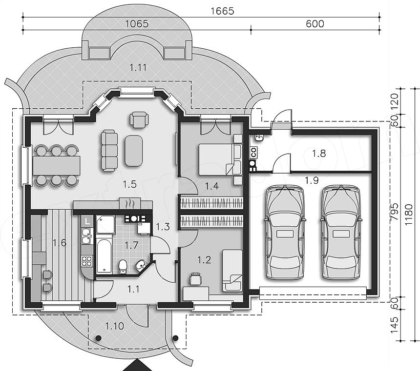 Kolejna wersja uroczego niewielkiego domu Sofia, tym razem z garażem na dwa auta i drewnianym stropem. Atrakcyjna bryła, urozmaicona pięknie zaprojektowanym wejściem i wykuszem ogrodowym, kryje funkcjonalne wnętrze. Do dyspozycji mieszkańców przewidziano salon z kominkiem, dużą kuchnię, dwie ustawne sypialnie i wygodną łazienkę. Zlokalizowana za garażem kotłownia, z niezależnym wyjściem na zewnątrz, pozwala na umieszczenie w niej pieca na paliwo stałe.
