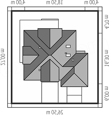Pow. zabudowy 226,61 m2 Min. szer. działki 26,5 m Kąt nach. dachu 35 st