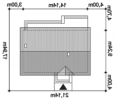 Pow. zabudowy 130,65 m2 Min. szer. działki 21,14 m Kąt nach. dachu 35 st