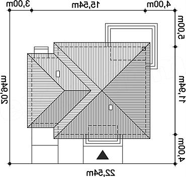 Pow. zabudowy 174,75 m2 Min. szer. działki 22,54 m Kąt nach. dachu 30 st