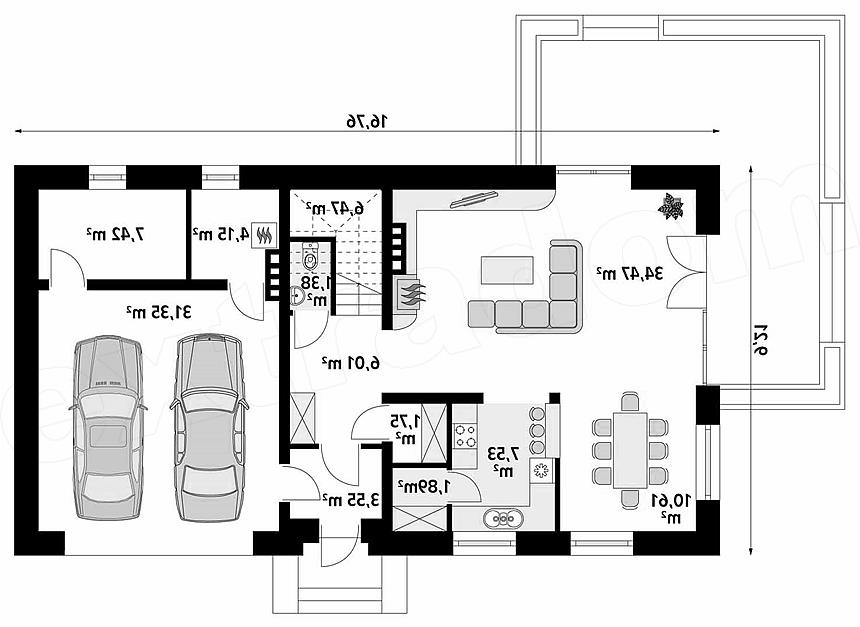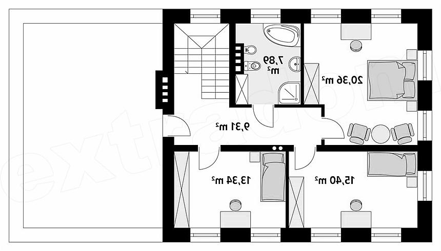 Dom jednorodzinny, dwukondygnacyjny z garażem dwustanowiskowym, niepodpiwniczony. Dzięki dwóm pełnym kondygnacjom istnieje możliwość łatwej aranżacji pomieszczeń. Na piętrze znajdują się trzy sypialnie i łazienka.