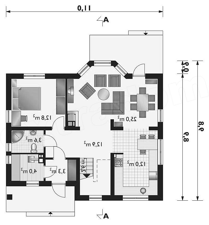 | Pow. użytkowa | 123,6 m2 | Kubatura | 706,7 m3 | Wysokość domu | 8,3 m |