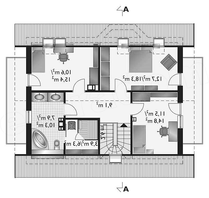 | Pow. zabudowy | 95,1 m2 | Min. szer. działki | 19 m | Kąt nach. dachu | 40 st |