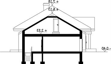 Wysokość ścianki kolankowej: 0.79 m. Ilość drewna na więźbę: 16.27 m³. Strop: płyta żelbetowa. Pokrycie dachu: dachówka ceramiczna. Ściany zewnętrzne: pustaki ceramiczne + styropian. Ściany wewnętrzne: pustaki ceramiczne. Typ ogrzewania: kocioł gazowy lub kocioł na paliwo stałe. Inne: okna połaciowe Fakro.